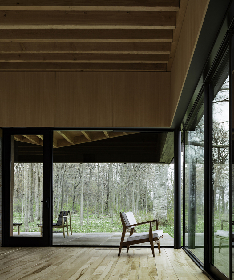 密歇根州特拉弗斯城的EnvironmentArchitects (AOR)設(shè)計(jì)了一棟棲息在木從中的