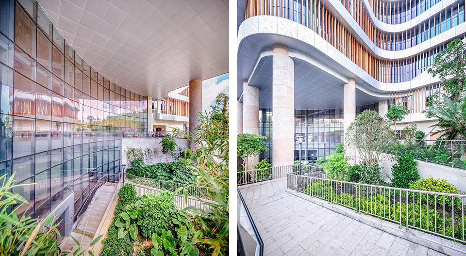 時(shí)境建筑的廣西老干部活動(dòng)中心項(xiàng)目結(jié)合地貌的變化,嘗試將本地傳統(tǒng)的竹木結(jié)構(gòu)建筑原型通過當(dāng)代技術(shù)轉(zhuǎn)譯為現(xiàn)代空間,變化的遮陽(yáng)板肌理暗合了本土手工印象,創(chuàng)造了豐富的室內(nèi)與室外的空間體驗(yàn)。