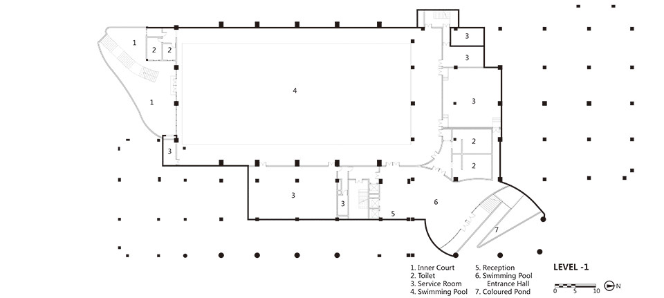我們希望通過這個(gè)項(xiàng)目喚起我們的父輩及下一代的歸宿感。農(nóng)業(yè)生產(chǎn)是那個(gè)時(shí)代“集體式生活”的標(biāo)志,自然地貌便是這一代人集體記憶的背景。我們通過對(duì)建筑空間在“地面”層面上的疊加,再現(xiàn)了自然地貌:在城市層面上,由于本項(xiàng)目地處城市擴(kuò)張的邊界,位于較低的洼地地形,面鄰一個(gè)保留的綠化高地,我們?cè)诮ㄖ址ㄉ弦胍幌盗猩舷洛e(cuò)開的水平樓板來使這兩種極端的地貌形成空間上的對(duì)話;在建筑尺度,我們轉(zhuǎn)譯了這種拓?fù)潢P(guān)系為一種多層樓板的空間類型,例如地下室空間轉(zhuǎn)折到首層入口層,接著又垂直延伸到二層空間,并不斷交錯(cuò)向上;在細(xì)部層面,我們使用了木紋鋁方通遮陽(yáng)板系統(tǒng)將豐富的地景引入到室內(nèi),是對(duì)本土的竹材結(jié)構(gòu)建筑形制所做出的回應(yīng)。