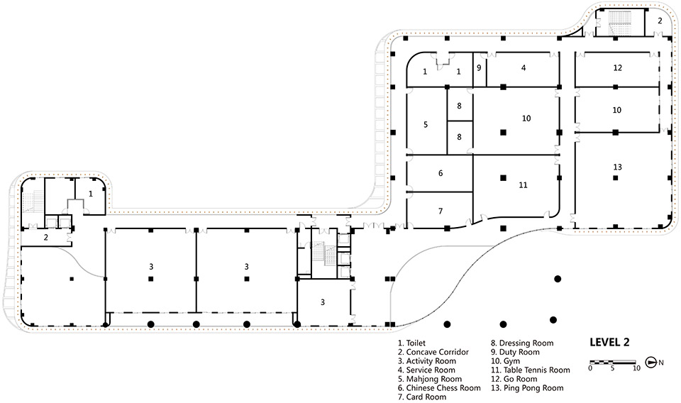 建筑的理念根源于對(duì)項(xiàng)目背后的人文內(nèi)涵的思考:建筑師希望要?jiǎng)?chuàng)造一個(gè)適于退休人員的空間,而這些退休者的青年時(shí)期大多是在文革中度過的。盡管歷史對(duì)文革的評(píng)價(jià)是負(fù)面的,但文革時(shí)期形成的“集體式生活”多少還是為那個(gè)時(shí)代留下了些溫暖的記憶。退休者對(duì)于命運(yùn)多舛的時(shí)代的歸屬感是建筑師對(duì)于現(xiàn)代生活的孤立與冷漠做出批評(píng)的立足點(diǎn)。