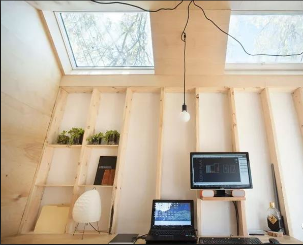 布魯克林區(qū)在后院建造工作室的趨勢(shì)一直蔓延到多倫多,在那里,建筑公司Six Four Five A的創(chuàng)始人在花園的盡頭,用木材為自己建造了一座迷你的工作室。