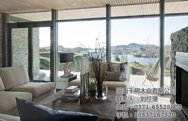 河南木別墅的尺寸和視野,是我們喜歡的一個(gè)焦點(diǎn)。特別對(duì)于度假木屋,在室內(nèi)平靜的與戶(hù)外自然景觀對(duì)話,是大窗戶(hù)的重要意義。大窗戶(hù)在木屋中,提供最佳漂亮的風(fēng)格,當(dāng)然對(duì)于木屋設(shè)計(jì)也是至關(guān)重要,如何漂亮美觀還要節(jié)能。如:窗戶(hù)與墻壁空間的比例、窗戶(hù)的形狀和尺寸及屋頂?shù)呐渲枚际窃O(shè)計(jì)的考慮因素,方向葉是很重要的,可能會(huì)建議包括深檐和傾斜的窗戶(hù)方向以便在減輕陽(yáng)光。