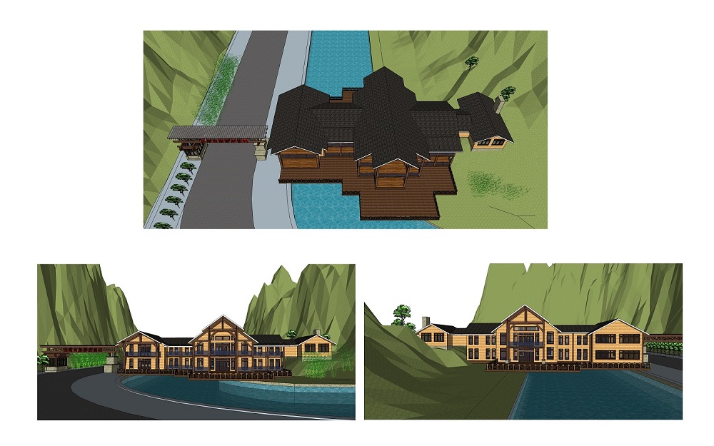 接待中心位于該景區(qū)大門口,總建筑面積1170㎡,分為上下兩層,建筑部分坐落在河面跨度21米的山間河道上方,設計師克服了跨河橋面的撓度問題使得項目施工最終順利完成。本接待中心木屋的主體結構采用的是美國花旗松膠合木,實現(xiàn)了大跨度的結構形式,墻體結構采用了標準的2*4工法施工,外墻掛板采用了紅雪松無節(jié)材。室內(nèi)設計有中央空調(diào),煙霧報警及噴淋系統(tǒng)。功能布局有接待廳,辦公室、母嬰室、民俗展示區(qū)、公共衛(wèi)生間及會議室。通過先期的設計,在保證項目的功能性及節(jié)能效率上發(fā)揮最大作用,地面使用率達到最高且建造速度快,安裝時不受氣候條件影響,同時最大限度的減少現(xiàn)場施工量,縮短施工周期,項目完成用時90個工作日,該項目自2017年4月交付使用以后受到甲方及游客的一致好評。