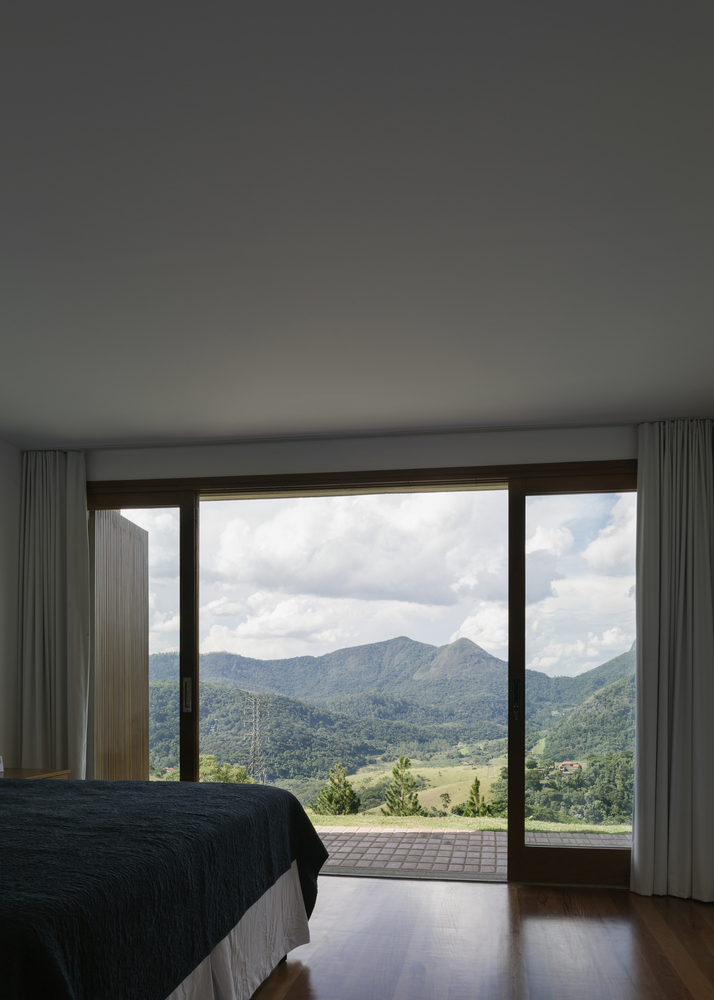 “蒙特堡”這一設(shè)計的內(nèi)在條件是建筑中最原始的一種主題——工程與景觀之間的關(guān)系。因為項目位于山頂,建筑師通過感知景觀的地平線與建筑工程外輪廓之間不確定的邊界而探索這一主題。作為一個前提,給住房進(jìn)行空間塑形的結(jié)構(gòu)從五個平行板的位置出現(xiàn),它們之間的間距決定了該項目的功能和結(jié)構(gòu)特性。
