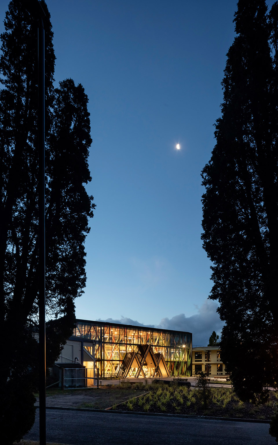 “Te Whare Nui o Tuteata”木材創(chuàng)新中心的落成代表了新西蘭逾十年來在木材研究上的進步與技術(shù)的成熟,木材不再是僅僅作為支撐結(jié)構(gòu)被簡單地組合在一起,而是被概念化了。該項目旨在造福未來,并鼓勵公眾參與到環(huán)境保護的大潮中。通過更加深入地思考木材的優(yōu)勢,以及開發(fā)更加優(yōu)質(zhì)的預(yù)制與拼裝木結(jié)構(gòu)建筑,“Te Whare Nui o Tuteata”成功地向大眾作出了一場具有全球意義的科學演示,向人們展示出如何建造更好的明天。