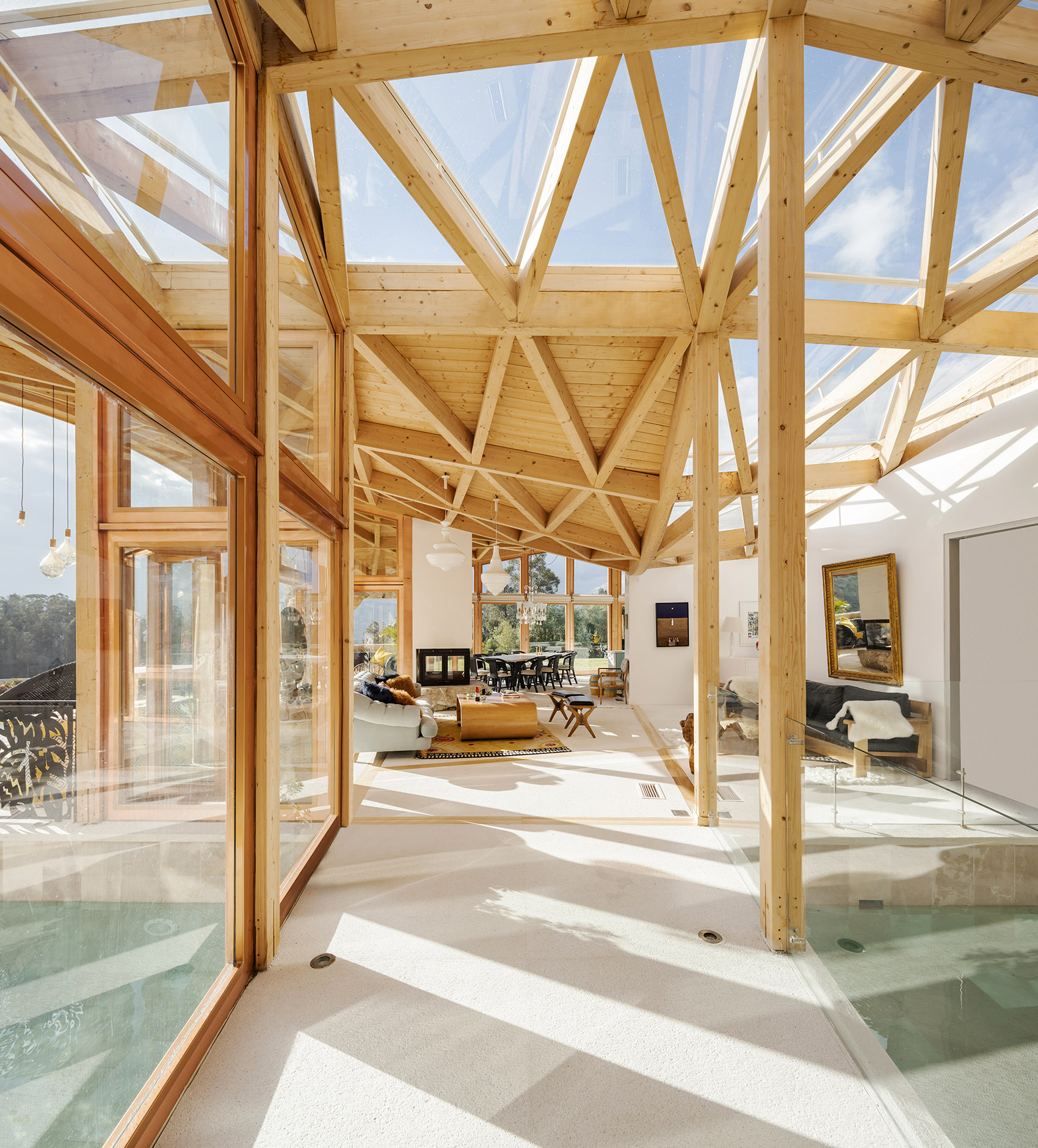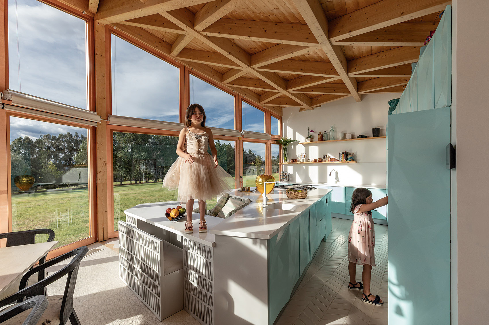 落成后的住宅呈現(xiàn)出石材與玻璃的微妙平衡,充滿活力與溫暖的木結構外觀則將建筑與環(huán)境融為一體。室內設計遵循了最初的概念,以精致的材料與現(xiàn)代化的設計,平衡并激活了建筑空間。從利用先進的制造工藝處理木材,再到結合本地和國際建造經(jīng)驗,本項目向大眾展示出本地工業(yè)的巨大潛力。這是厄瓜多爾首次實現(xiàn)該類型的建筑,并達到如此細致的水平。將數(shù)字技術與當?shù)氐氖止趧蛹夹g相結合,不僅創(chuàng)造出獨特的建筑形式,同時也有助于提升該國建造業(yè)的潛力與可能性。